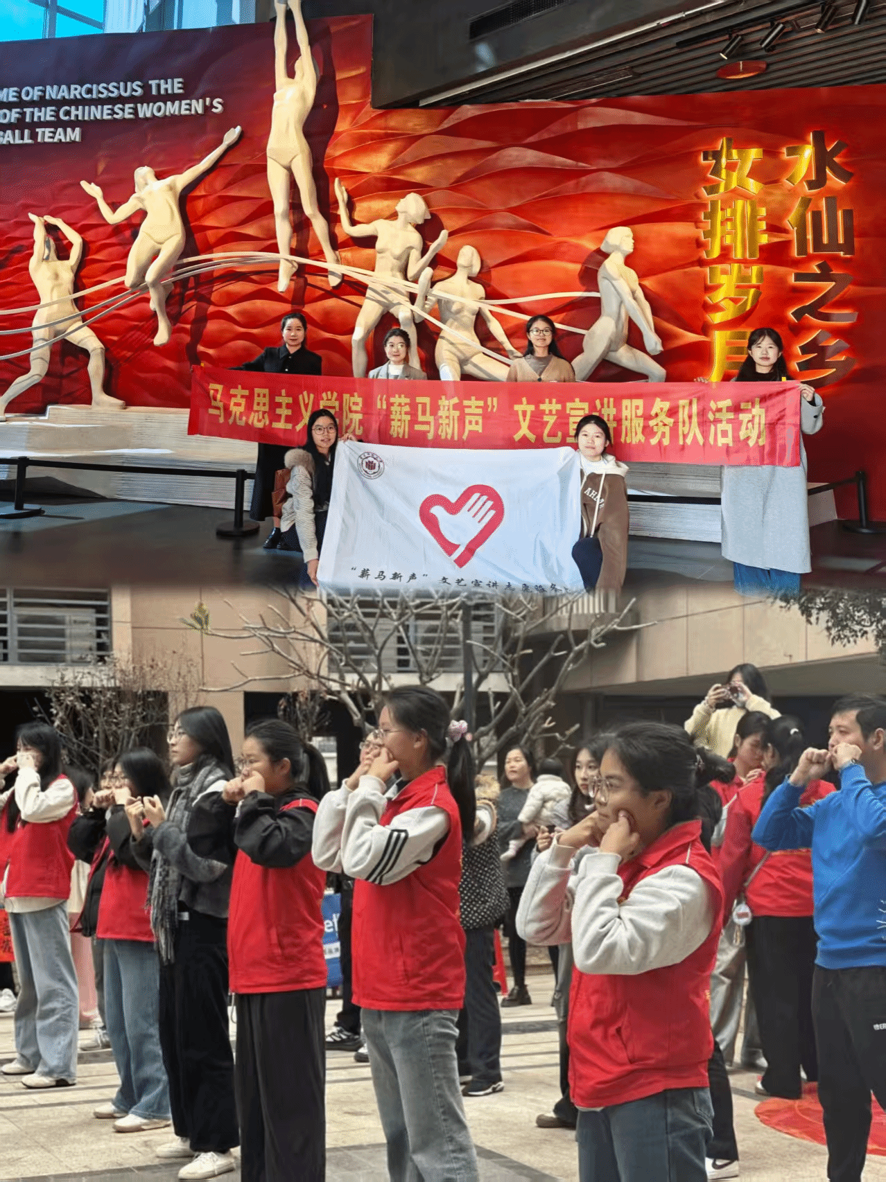 组织学生于漳州市中国女排精神展示馆、芗城区新桥街道悦港社区开展“薪马新声”文艺宣讲志愿服务队新一批志愿讲解员考核工作、跨年暨身心健康科普志愿活动。(通讯员 林蓥欣)