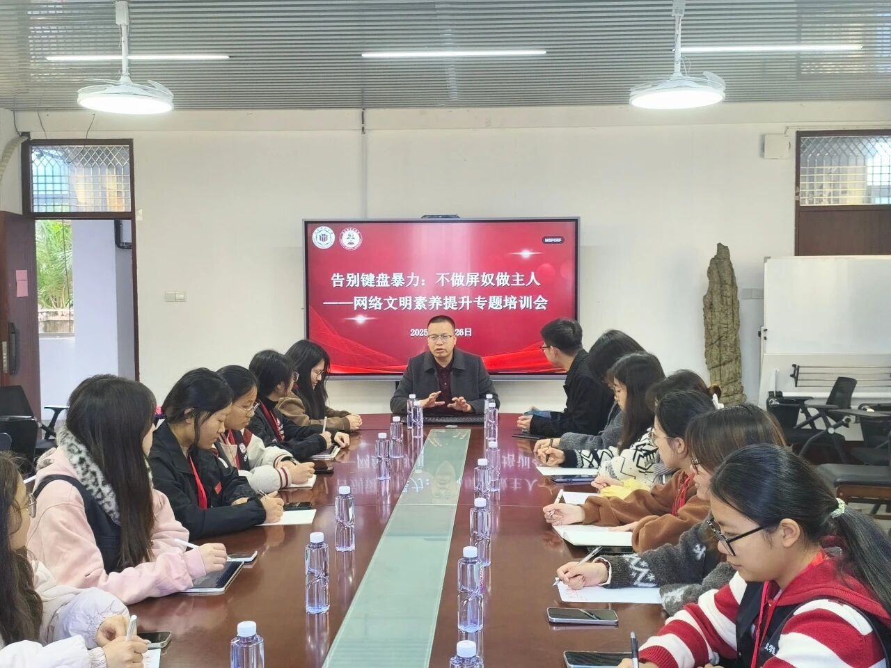 党委副书记邓战军在综合楼中区404主持召开告别键盘暴力:不做屏奴做主人——网络文明素养提升专题培训会。会议由人兽性交
