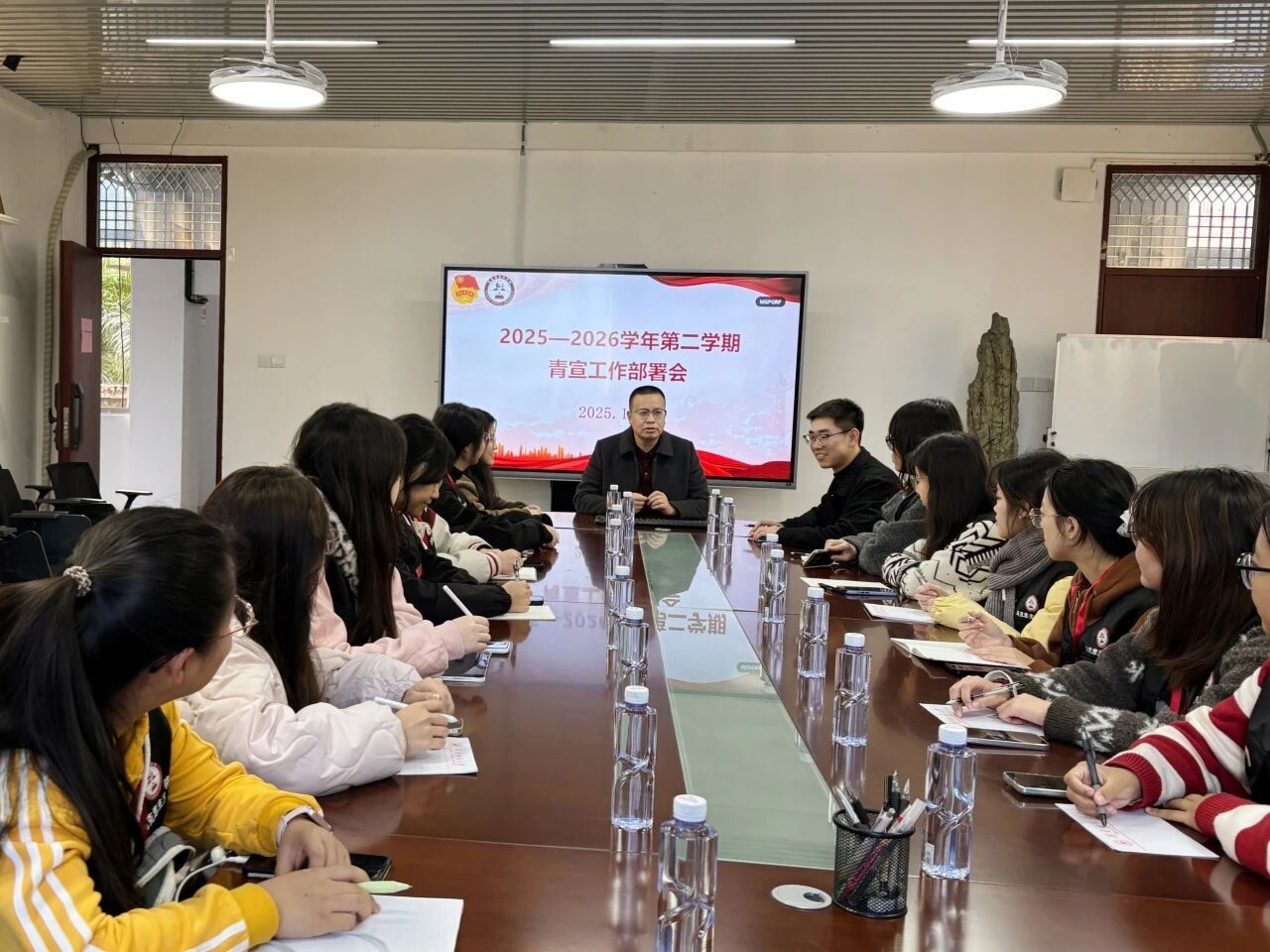 党委副书记邓战军在综合楼中区404主持召开2025—2026学年第二学期青宣工作部署会。会议由人兽性交
