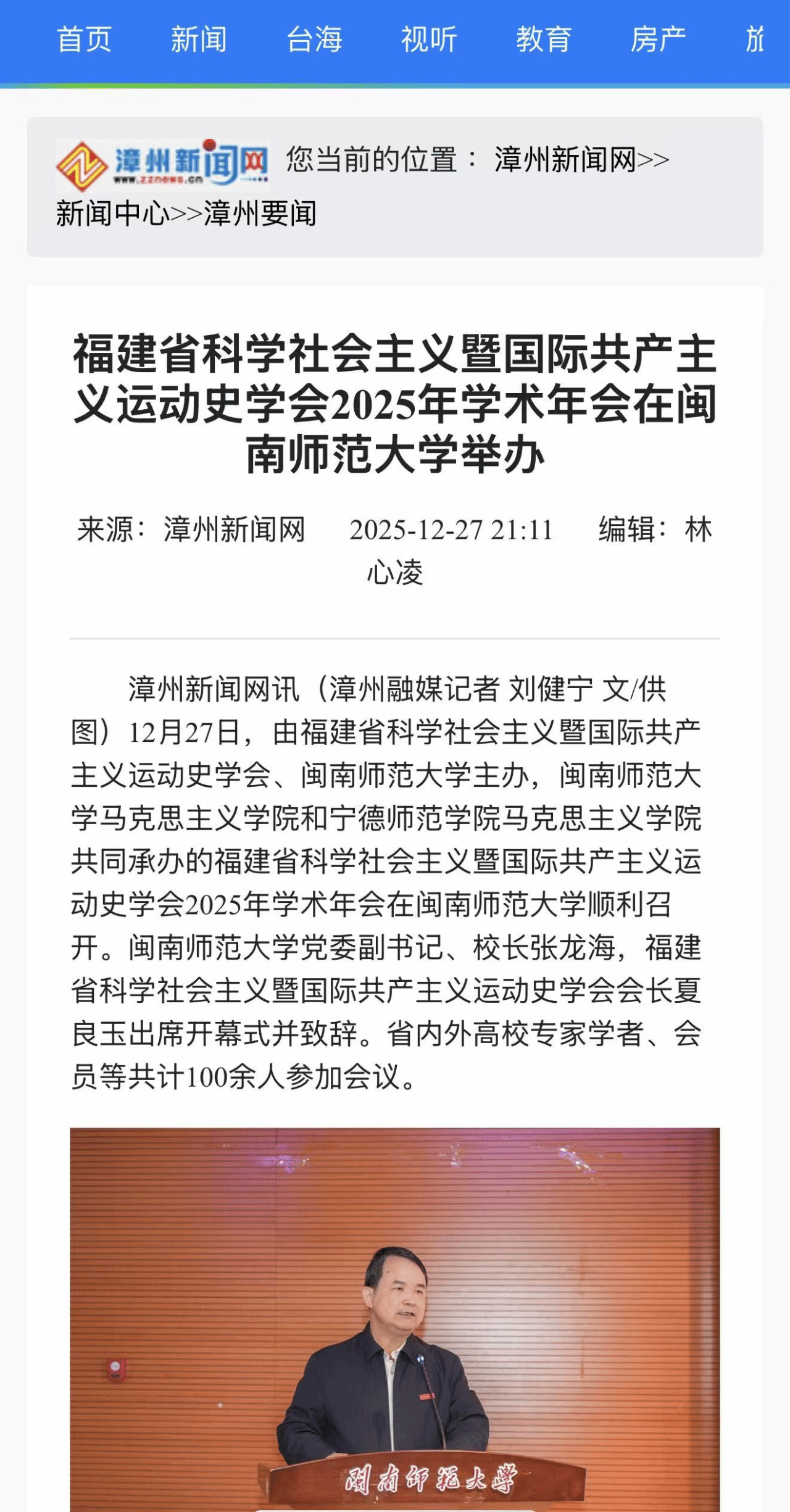 1、漳州新闻网:福建省科学社会主义暨国际共产主义运动史学会2025年学术年会在人兽性交