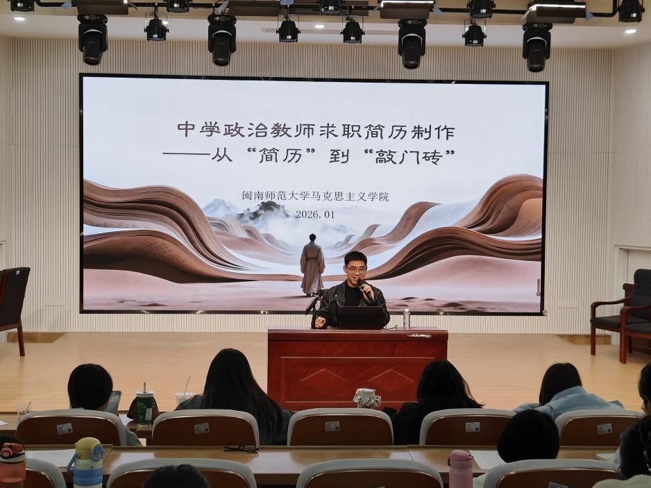 于马院礼堂召开中学政治教师求职简历制作——从“简历”到“敲门砖”专题讲座,本次讲座由辅导员任程龙老师主讲,2023级全体本科生到场参加。(通讯员 黄娇萍)
