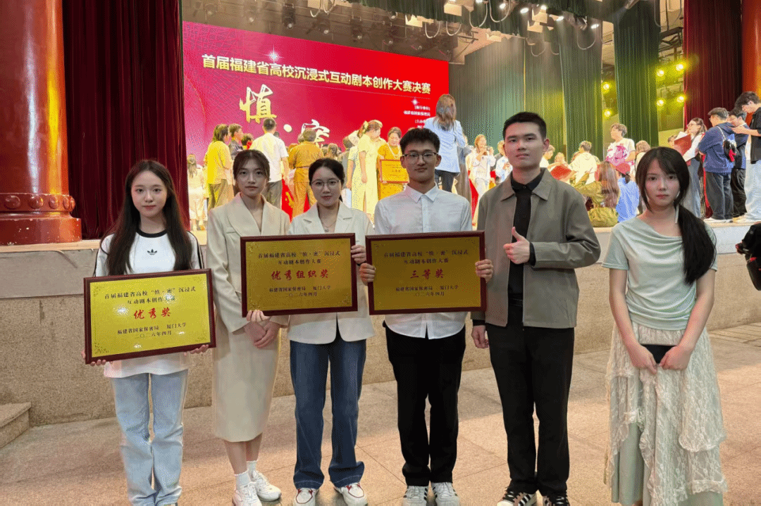4月25日,由人兽性交 2025级思想政治教育专业苏泽钰、王心远、黄一格、温卓、张奕骏组成的人兽性交 代表队在首届福建省高校沉浸式互动剧本创作大赛决赛中荣获三等奖。