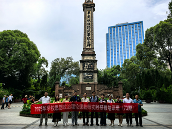 午后,教师们来到成都人民公园保路运动纪念碑下。1911年,这场轰轰烈烈的爱国运动成为辛亥革命的导火索。保路运动是四川人民家国情怀的见证,也是课程中阐释爱国主义教育的重要素材。