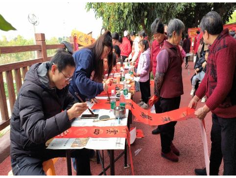春联,作为中国传统文化的重要组成部分,寓意吉祥、祝福和美好。寒假期间,林月同学随母校老师一同参加“龙腾新春,笔墨生辉”进社区写春联送祝福活动。活动现场年味满满,社区街道的老人小孩纷纷前来观赏,更有甚者亲自落笔挥洒笔墨。她说,看着老师们以及学弟学妹们共同创作,写下翰墨飘香的祝福春联,感受到了中华优秀传统文化的魅力以及浓厚的节日氛围。活动最后完成了许多独具匠心的新春对联,鲜红的纸联为寒冷的冬天带来了丝丝暖意。