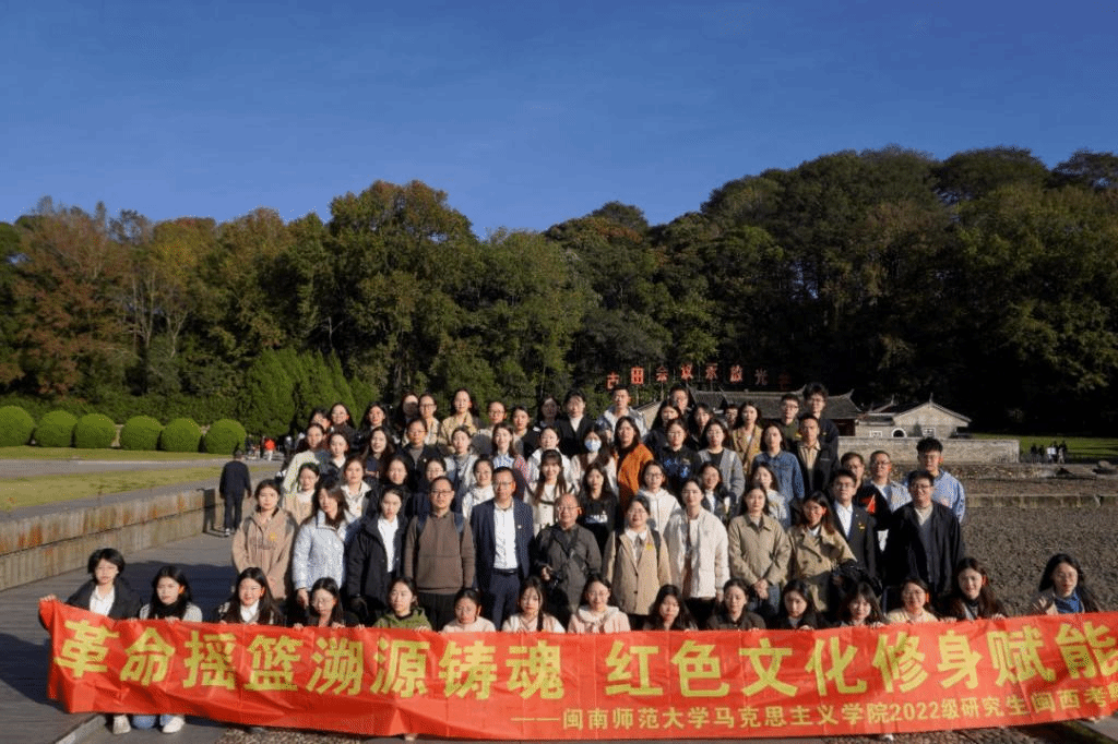 师生赴闽西革命老区开展专业实践考察。学院党委副书记邓战军、兰毅辉教授、团委副书记潘怀杰、辅导员沈书伊以及全体2022级硕士研究生共计80余人参加。