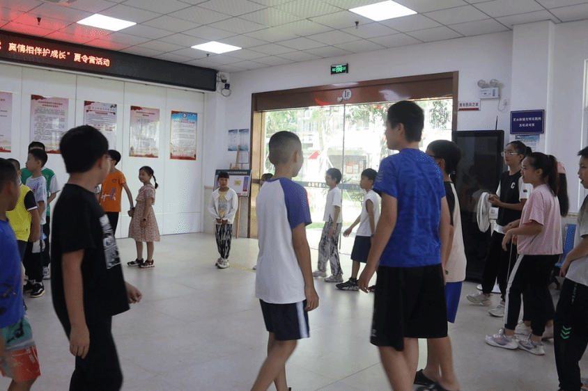 7月8日下午,实践团组织策划了大中小学生破冰互动环节,通过“乒乓球接力赛”“桃花朵朵开”“正话反做”等系列活动,拉进青髫志愿者与实践团成员之间的距离。紧接着,实践团开展枫桥社区发展沿革及治理经验学习交流会。会上,实践团成员各抒己见,讨论热烈,并合理利用多媒体设备展示学习成果,在交流互鉴中深入了解枫桥为民、利民、惠民的实践做法。