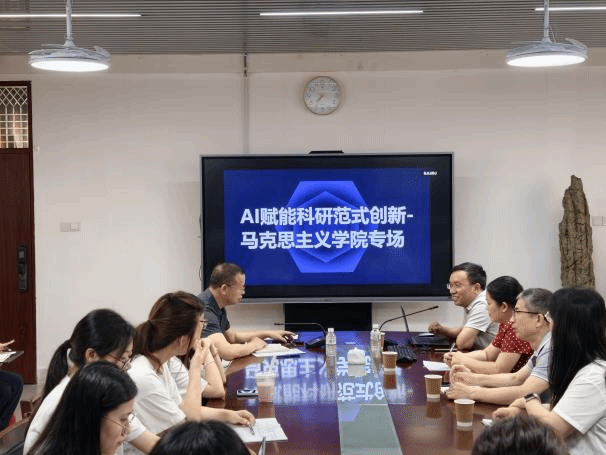 在综中404举办“AI赋能科研范式创新”专题讲座,讲座由校图书馆陈添源馆长主讲,学院党委副书记邓战军主持,图书馆相关馆员老师及学院各年级研究生和本科生代表参加。
