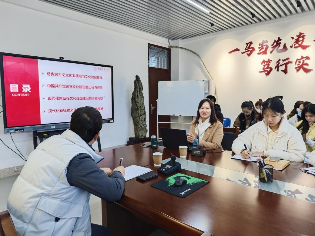 在讲座最后,牛老师希望全体研究生要以本次讲座为契机,进一步学习领会习近平文化思想,坚守中华文化立场,自觉运用党的二十大精神武装自己的头脑,成为中华优秀文化的忠实继承者和发扬者。