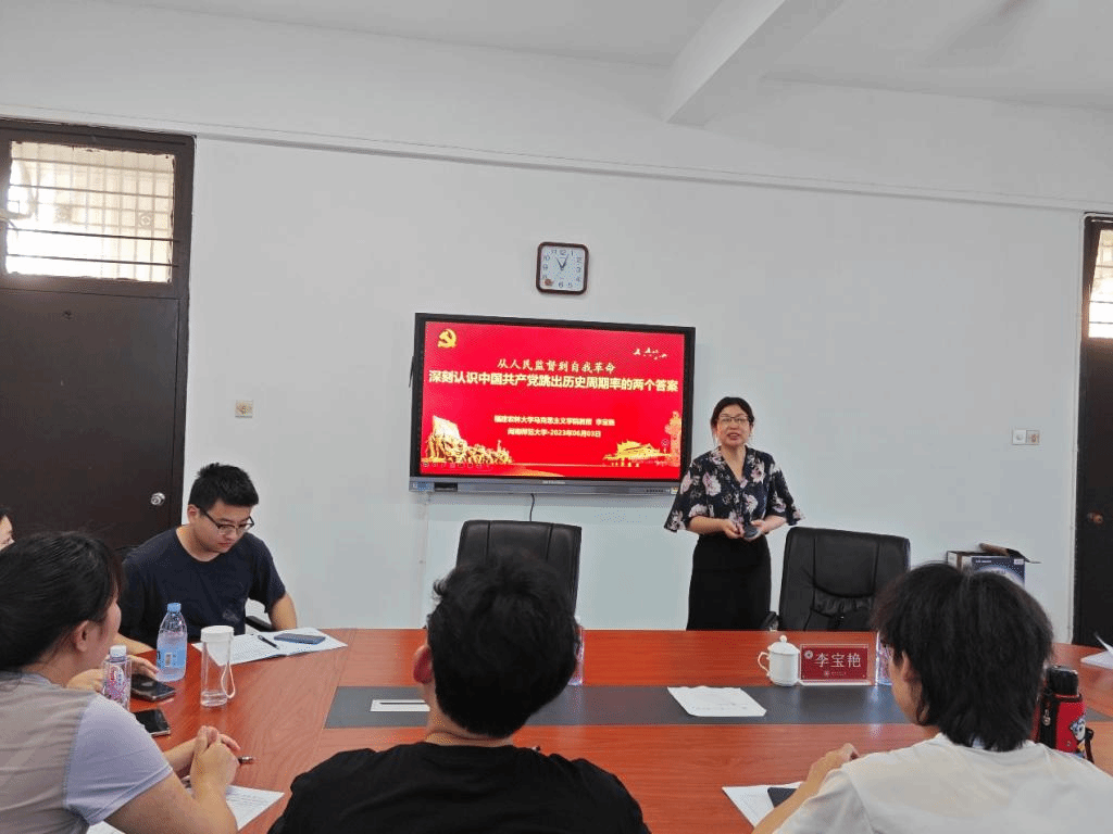 李宝艳教授以时间为线索,以历史为依据,为我们阐述了从人民监督政府到自我革命这两个答案形成的过程及其重要性。李宝艳教授梳理了“人民监督政府”第一个答案的产生路径,阐述了“自我革命”第二个答案的实践经验,最后深刻论证了这“两个答案”之间的辩证关系,为我们带来了一场学术盛宴。在讲座最后,她殷切寄语青年要认真学习中国共产党跳出历史周期率的两个答案,才能更好地担起党的历史使命。
