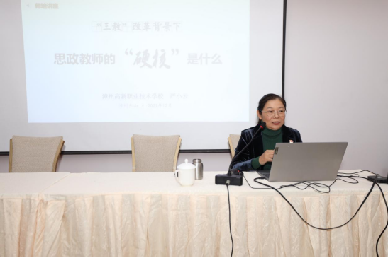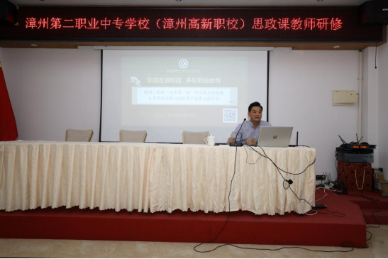 漳州职业技术学院张毓雯老师带来了《谷文昌示范课:正确的人生观》,赢得了一致好评;漳州第二职业中专学校党委书记、校长赵为船以《非遗走进校园 多彩职业教育》为题,通过“道术器一统”的非遗文化传承人才培养实践与老师们交流分享创新教学成果;漳州第二职业中专学校严小云老师主讲了《三教改革背景下中职思政教师的“硬核”是什么》,结合自身授课经验与在座教师们分享了教改新形势下中职教师应如何提升自我,从而更好地服务教学。