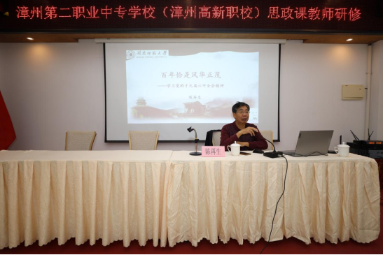 陈再生院长应邀为参训教师作了《党的十九届六中全会精神解读》的报告,详细解读了十九届六中全会精神,提升了本次研修班的思想政治理论水平。