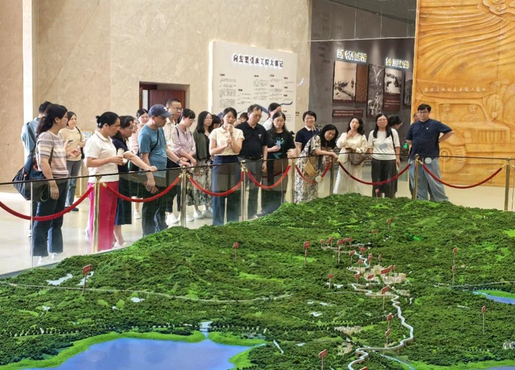 在向东渠事迹展示馆,党员们跟随讲解员的脚步,依次参观了“勇于担当、团结奋斗、攻坚克难、开拓创新”四个展区,共同回溯了“江南红旗渠”波澜壮阔的建设史。五万多位建设者以“蚂蚁搬家”的毅力、“肩挑锄挖”的坚韧,跨越山河沟壑,让渠水翻山越岭直抵东山县红旗水库,以誓将山河重安排的气魄,在云东大地上创造了向东渠这个人间奇迹。