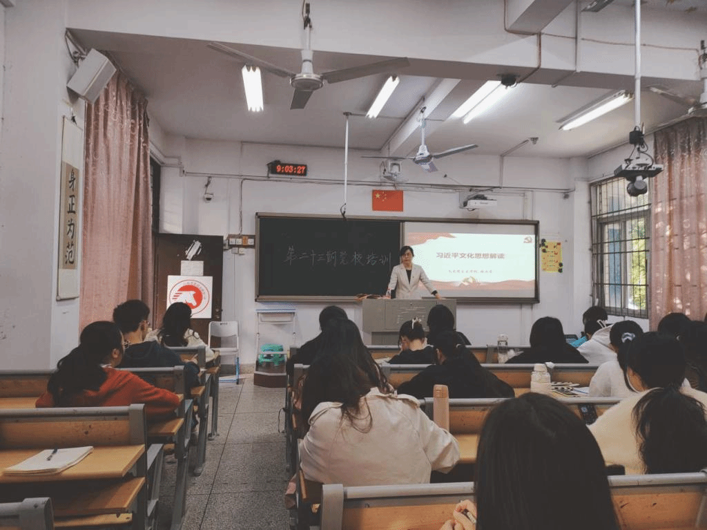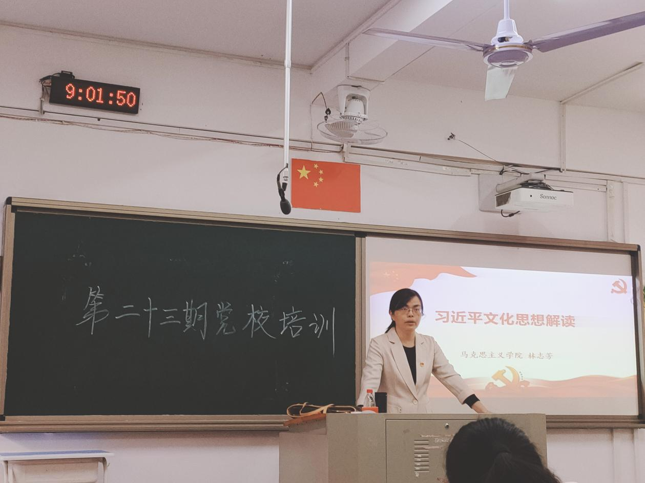 第二十三期入党积极分子培训第五讲在综南201举行。本次培训以“习近平文化思想解读”为主题,由林志芳老师主讲,全体入党积极分子参加。