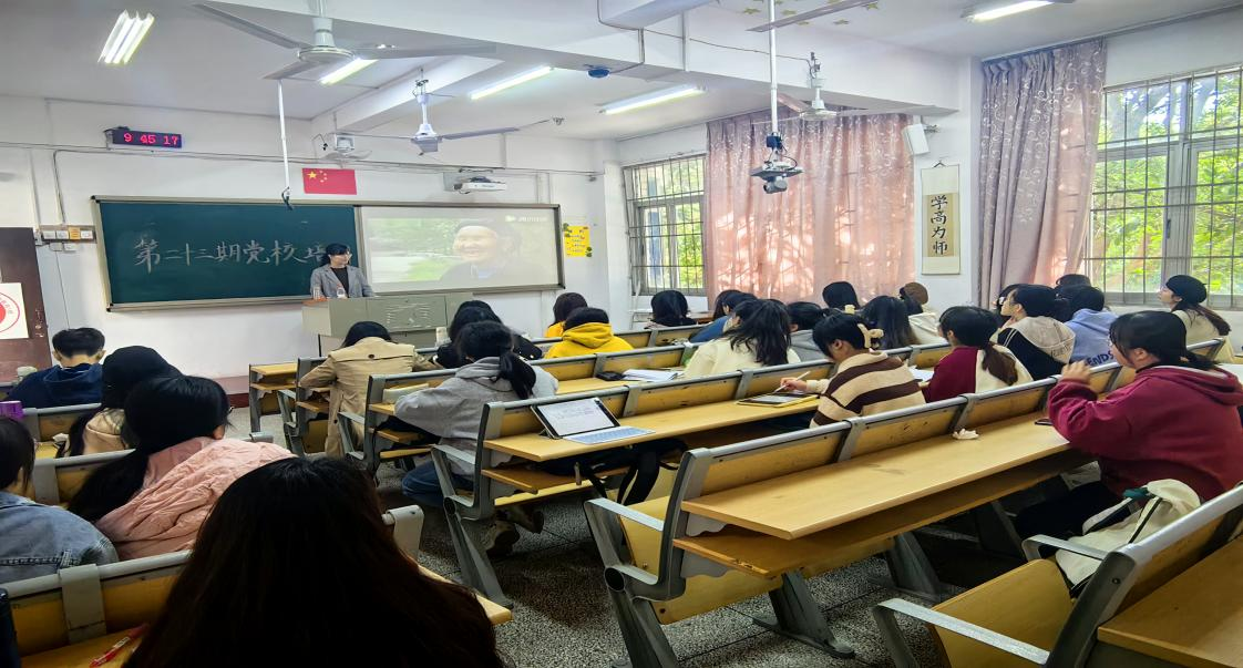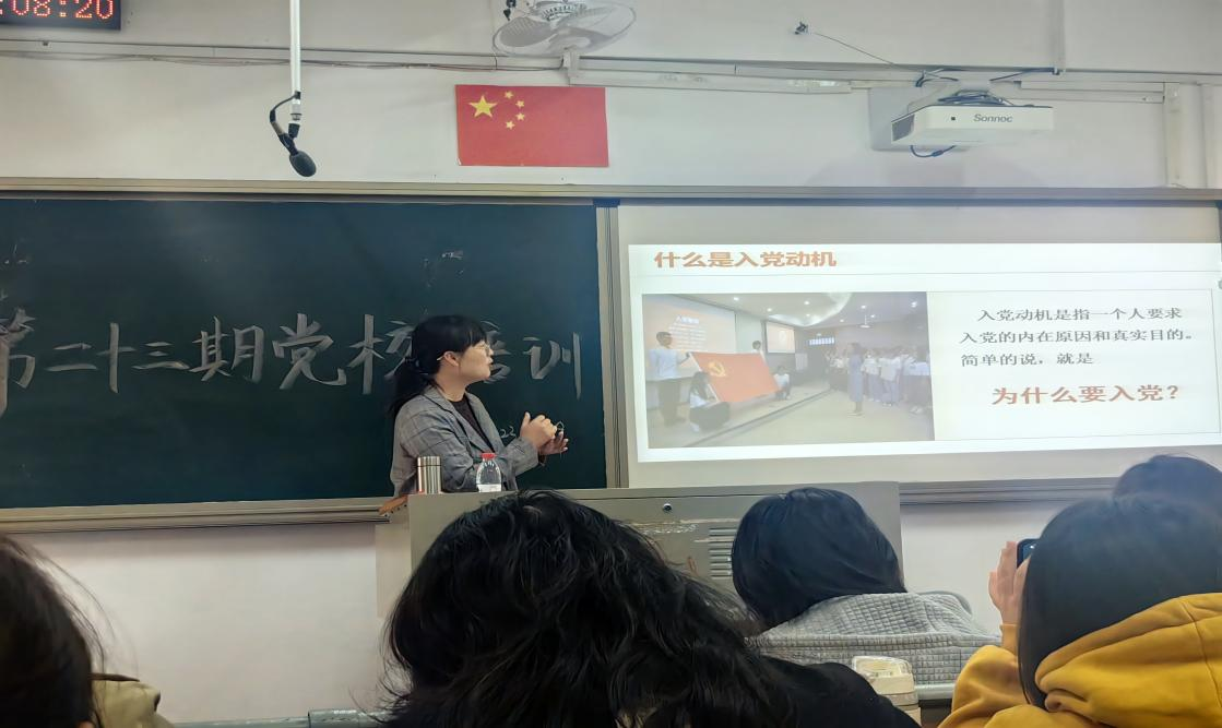 第二十三期入党积极分子党校培训第三讲在综南201举行。本次培训以“涵养初心,淬炼本领——谈谈大学生入党动机的确立与实践”为主题,由陈晓蕾老师主讲,全体入党积极分子参加。