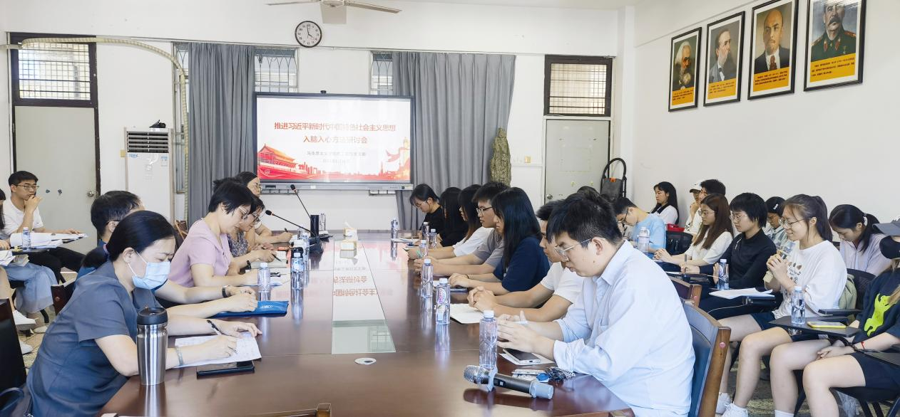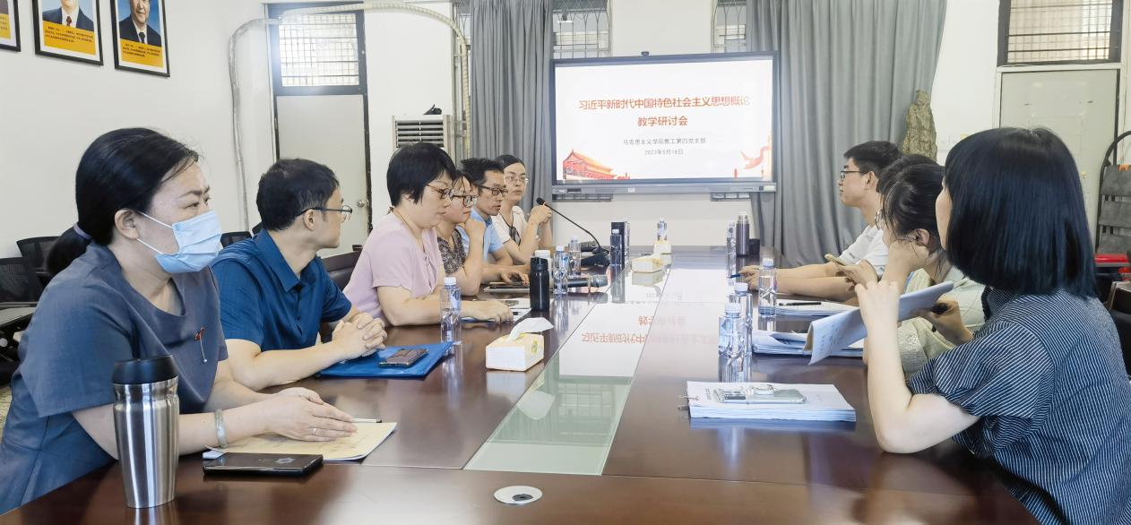 教工第四党支部在综合楼中区404开展“推动习近平新时代中国特色社会主义思想入脑入心方法”专题调研活动,全体《习近平新时代中国特色社会主义思想概论》课授课教师参加调研。