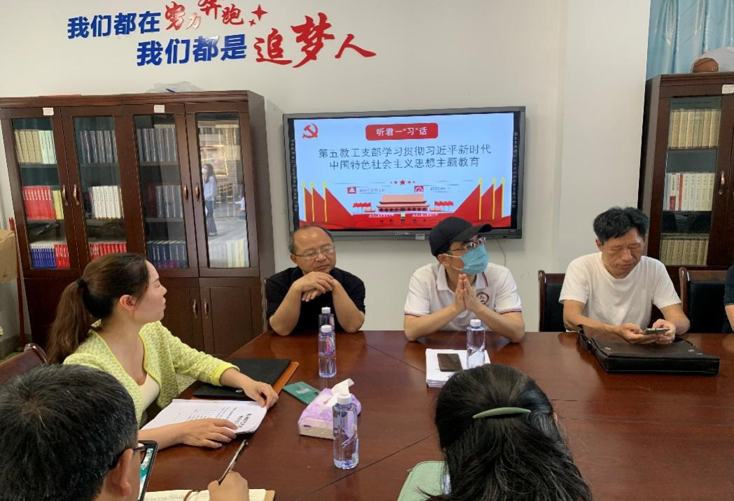 教工第五党支部开展学习贯彻习近平新时代中国特色社会主义思想主题教育。本次学习采用“理论学习+”模式,首先由支部书记组织大家学习《习近平新时代中国特色社会主义思想专题摘编》《习近平新时代中国特色社会主义思想的世界观和方法论专题摘编》,以及习近平总书记关于教育的重要论述等内容。其次,围绕着学习的重点,本次活动还邀请了李德栓老师做专题发言,其分享了参加“21世纪马克思主义与人类文明新形态”论坛暨福建省社会科学界联合会分论坛的学术资讯。