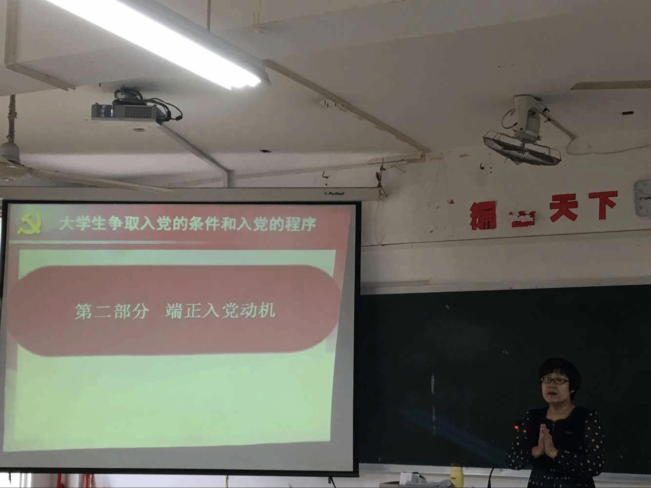 2017年4月22日8时30分,人兽性交 于博东212开展第十期党校培训第四讲,单联娟老师担任此次授课的主讲人。本次培训围绕“端正入党动机”为主题展开,向学员们阐述了作为一名合格党员应该具备的品格,加深了同学们对入党意义的理解。