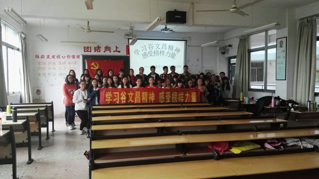本次活动,主讲人以播放有关学习谷文昌“三严三实”的视频引入,让我们懂得自觉践行并弘扬谷文昌先进典型的重要性。随后,通过微视频走近谷文昌,了解谷文昌生平与贡献,进一步认识谷文昌书记永不服输的精神。最后,浅谈谷文昌先进典型,让同学们铭记前人开拓创新的精神,明确自身职责,做到在其位谋其职。