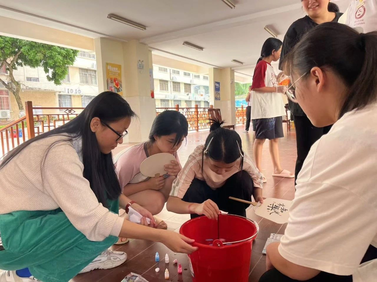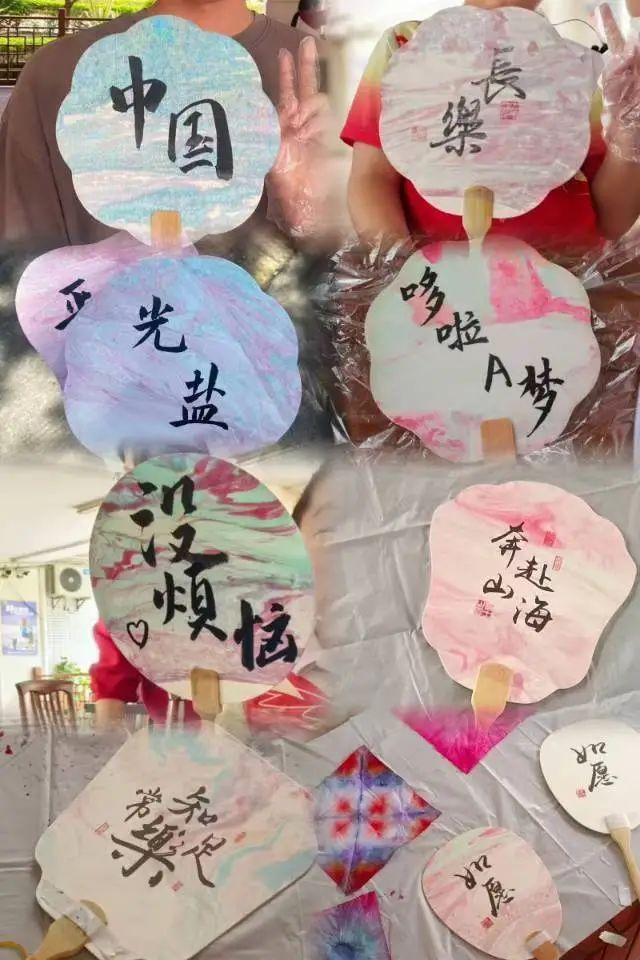 为进一步激发特殊儿童对传统文化的热爱,支部党员一边演示一边为大家详细介绍漆扇的历史、制作工艺和文化内涵。孩子们在小老师们的耐心引导下全心投入,以漆为笔、以水为媒、以扇为纸,一进一出间,制作出一把把独特的漆扇。在“题字区”,支部党员根据孩子们的喜好,为他们亲手制作的漆扇写上一段段温暖的文字。