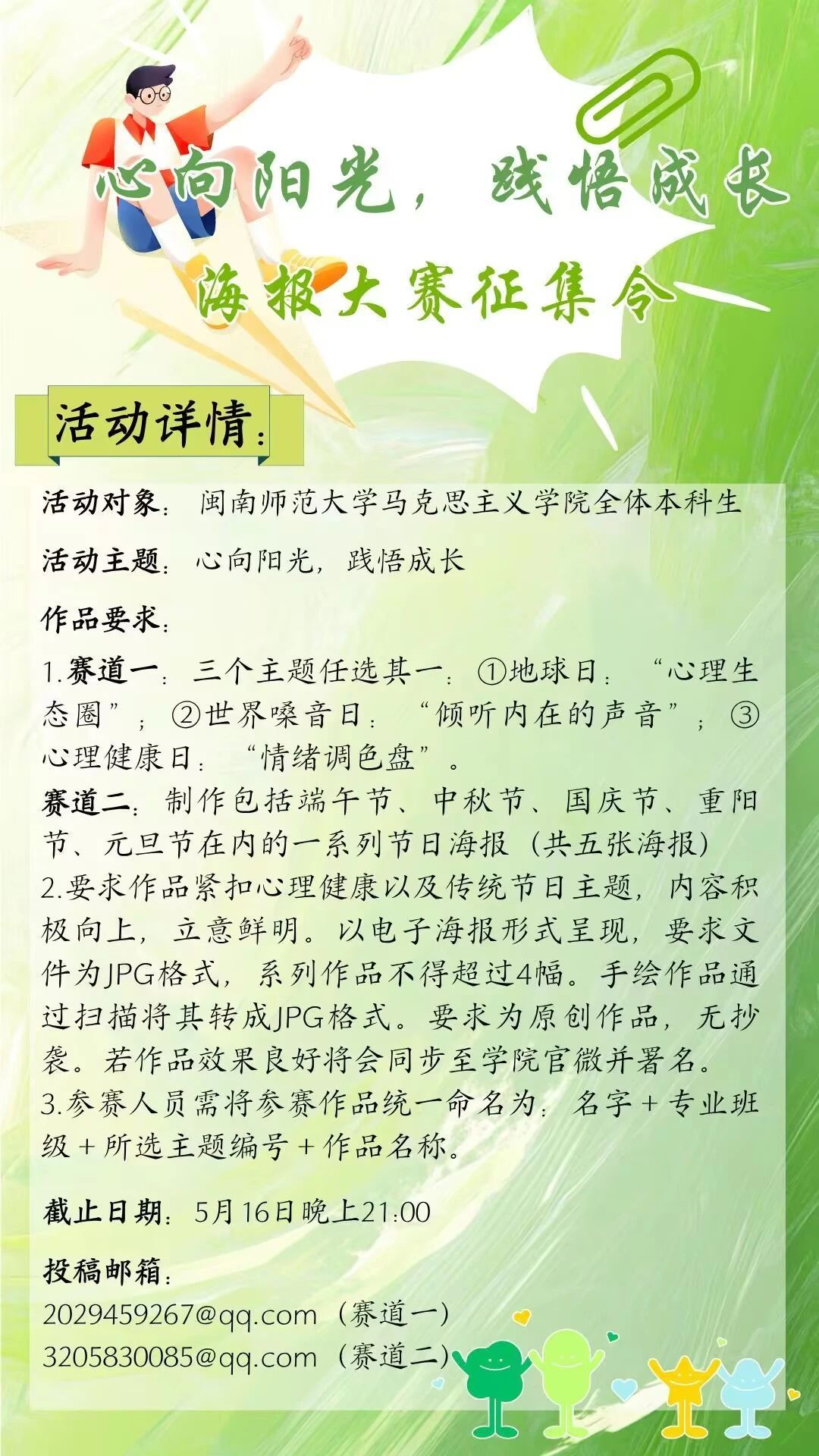 举办了 “心向阳光,践悟成长”心理健康海报设计大赛。以艺术为桥梁,将心理健康教育与创意表达结合,既赋能个体的心理成长,也推动群体对心理议题的重视,最终实现“以美育人、以心成长”的目标。