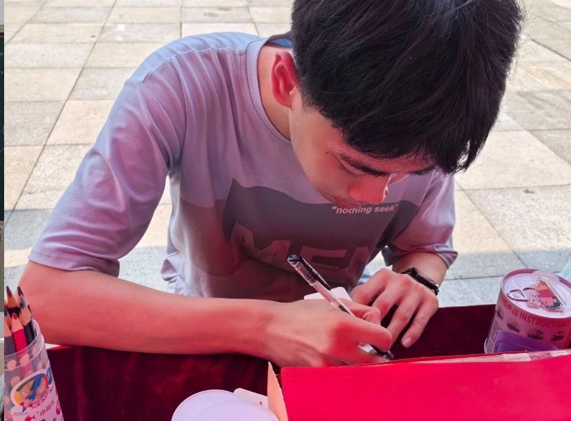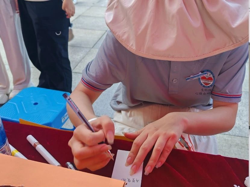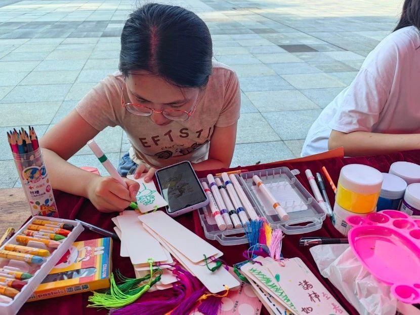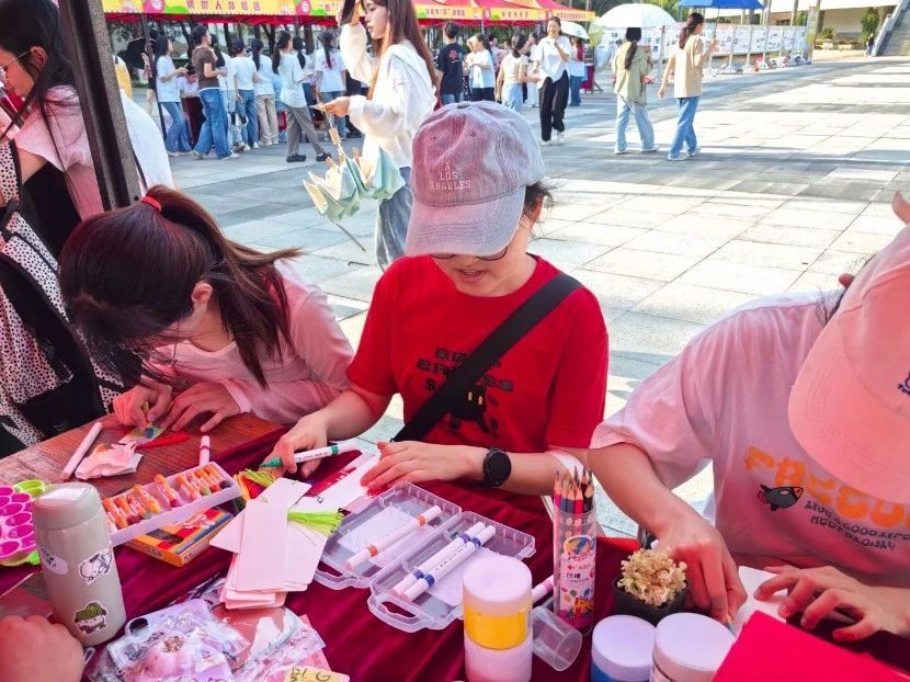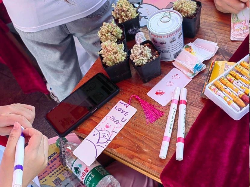弦歌广场上举行“心灵书签”活动。心协成员引导参与者在摊点自由选择材料,围绕梦想、感悟、激励话语等主题,进行书签创作。此次活动为学生提供了情感表达的出口,有助于学生释放内心压力,缓解焦虑情绪,提高心理健康意识和自我调适能力。