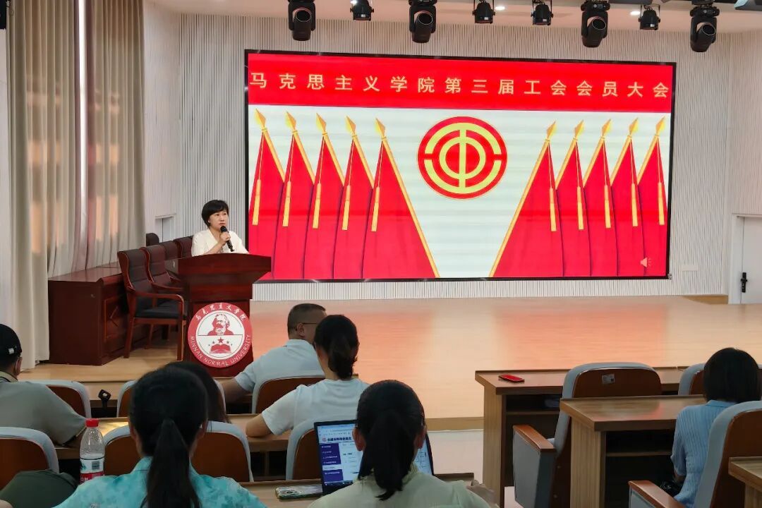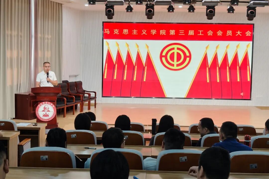 第三届工会会员大会暨工会委员会换届选举大会在马院礼堂召开,院领导班子、全体工会会员参会,院党委副书记邓战军主持。