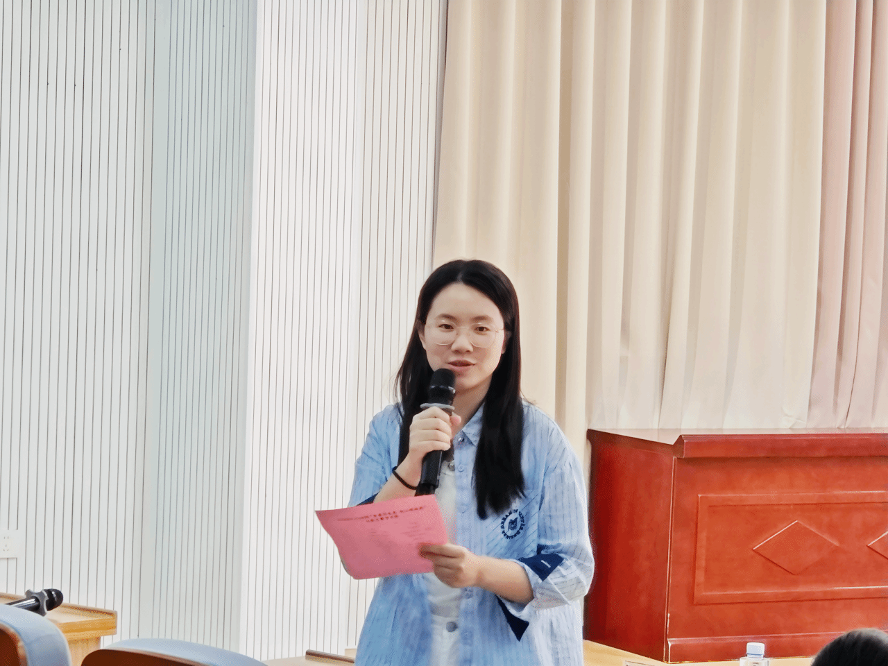 全部选手演唱完毕后,陈燕云老师对本次比赛进行点评。她首先充分肯定了所有选手的精彩表现,特别称赞选手们在歌曲情感表达、台风展现上的用心,既展现了青年学子的青春风采,也让红歌有了 “新演绎”;同时着重强调,红歌不仅是历史的 “声音印记”,更是青年学子坚定理想信念、厚植爱国情怀的 “精神养分”,希望学子们能在红歌传唱中读懂历史、汲取力量。随后,沈书伊老师对比赛进行总结。她表示,本次红歌大赛不仅是一场音乐盛宴,更是一堂生动的红色思政课。她赞扬同学们用歌声传递信仰、用舞台诠释担当,充分展现了马院学子昂扬向上的精神风貌。她鼓励大家以此次比赛为契机,将红歌中蕴含的奋斗精神与爱国情怀融入日常学习与生活,争做有理想、有本领、有担当的新时代青年。