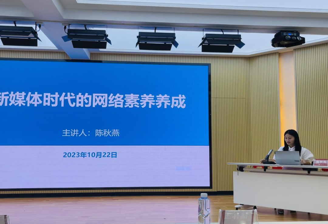 10月22日下午,校党委宣传部宣传科科长陈秋燕老师以“新媒体时代的网络素养养成”为主题,阐述了网络素养内涵以及新媒体的发展特点,同时,结合丰富的校园案例着重为学员们讲解了新闻写作、摄影的方法、技巧与注意事项。