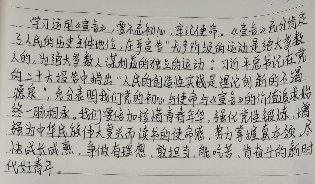 通过此次关于《共产党宣言》的读书会,帮助同学们更好地理解马克思主义的丰富内涵和精髓要义。同时也激励了大家进一步掌握和运用马克思主义的立场观点方法,不断从中汲取智慧和力量。用理想之光照亮奋斗之路,用实践伟力开创美好明天!