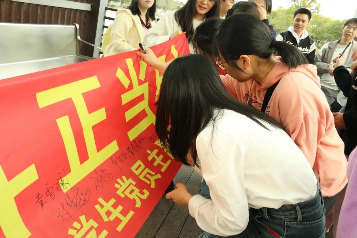 师生党员纷纷签名表示,要珍惜来之不易的美好生活,弘扬革命精神,传承红色基因。铭记历史,吾辈当自强,为奋进新时代贡献青年力量。