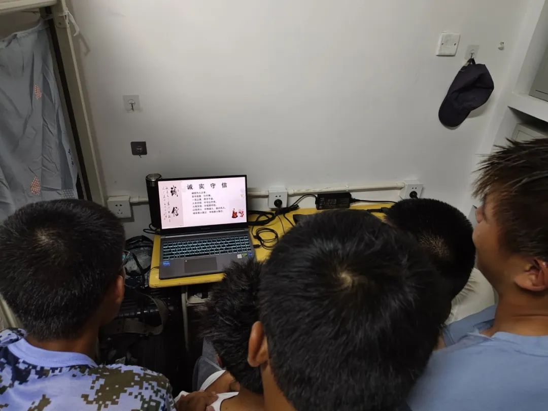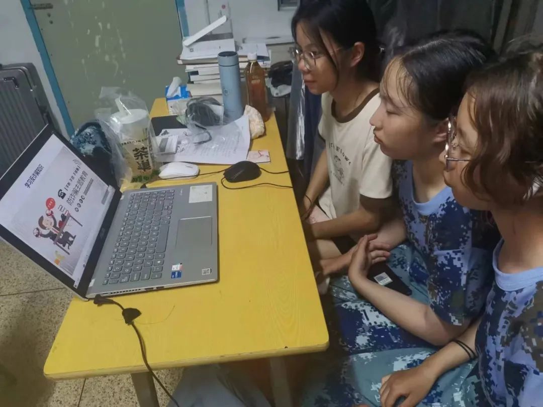 在火热的军训之余,马院学子在宿舍里围在一起,共同学习此次反诈骗、讲诚信的相关知识。通过此次的线上学习,同学们纷纷表示收获满满,为接下来的大学生活打下了良好的基础。