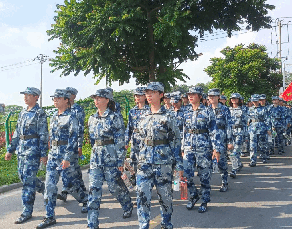 学子在红旗下一直保持着饱满的精神状态,昂首挺胸,队列规整。以军训拉练,强身健体,纪念九·一八!