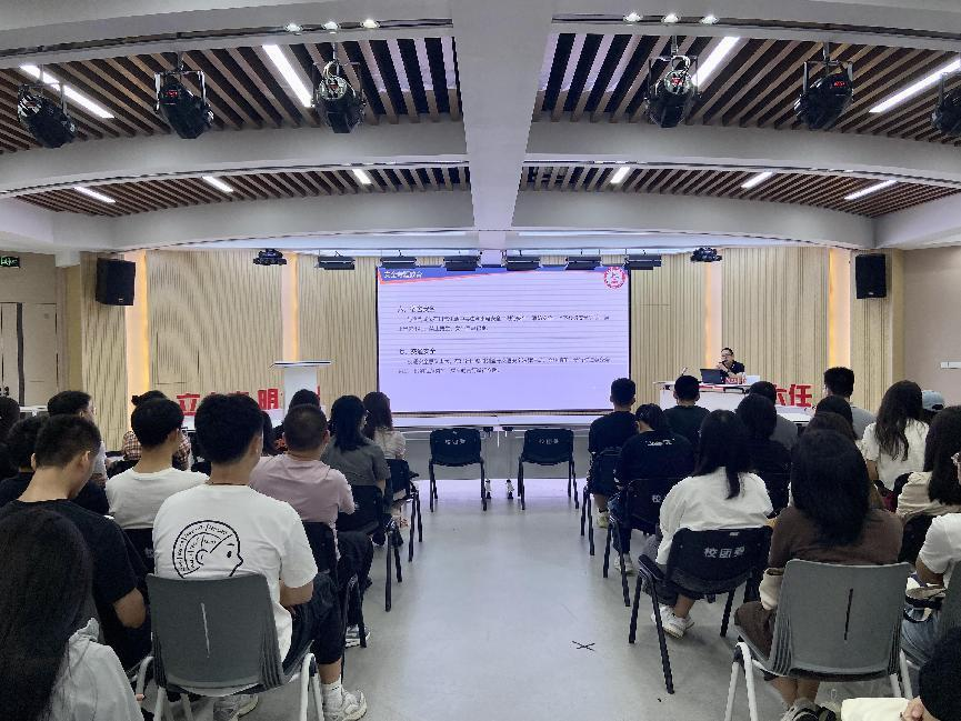 于达理活动中心三楼召开2023级研究生新生主题班会,会议由团委副书记潘怀杰主持,2023级全体研究生参加。