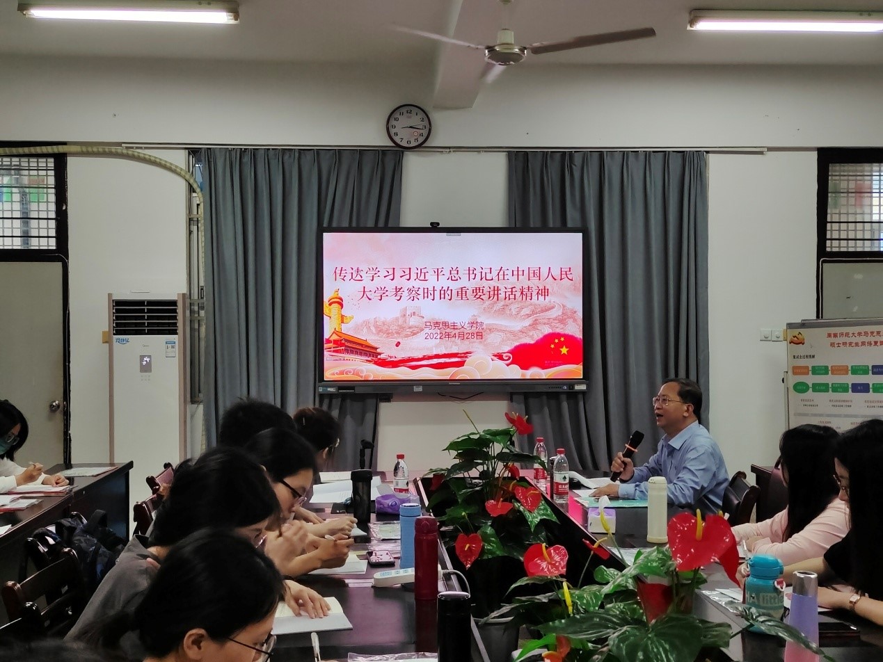 党委召开专题会议,传达学习习近平总书记在中国人民大学考察时的重要讲话精神,研究部署贯彻落实举措,院党委书记李定庆就组织全院师生开展学习总书记重要讲话精神进行了部署,他从党建、教学、团学工作等几个方面进行了布置,并提出了具体工作要求,院党委委员和各科室负责人参加了会议。