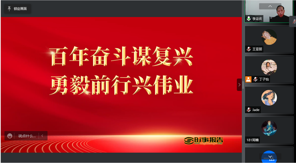 18级全体学生讲授以“百年奋斗谋复兴,勇毅前行兴伟业”为主题的形势与政策课。