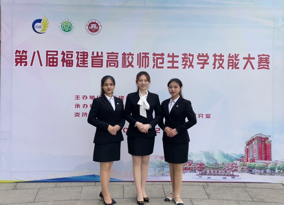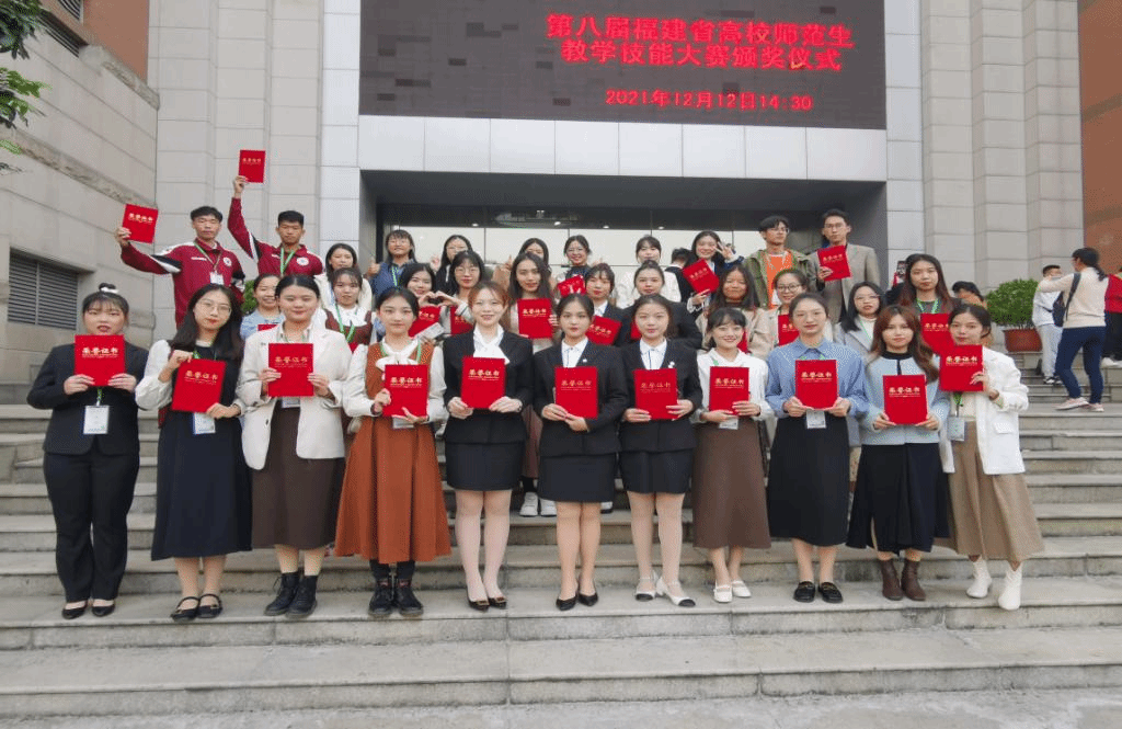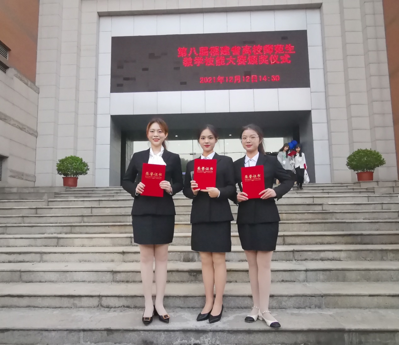 三名选手分别获得全省第一名、第四名、第五名的好成绩,景云老师获第八 届福建省高校师范生教学技能大赛“优秀指导老师”荣誉称号。