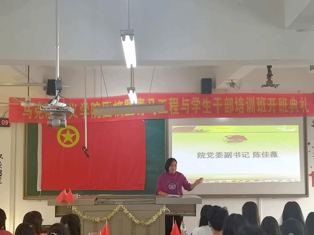 伴随着庄严的国歌和团歌,本次开班典礼正式开始。首先,由院党委副书记陈佳薇致词,传达了学院党委对团校工作的指导以及对学员们的殷殷期盼。她指出,团校培训是青年团员加强理论学习的阵地,学员要充分认识团校培训的重要性与必要性;教导学员们要追求真理,沉稳思辨,做时代思考者;要知行合一,艰苦奋斗,做有理想、有本领、有担当的有志青年。接着,会上向学员宣读团校须知,明确团校纪律,要求学员保质保量完成学习任务。最后,院学生会主席蔡艺真代表发言,讲述自己在校三年的成长与收获,鼓励学员向纵深发展,坚定信念,志存高远,做坚定的青年马克思主义者。