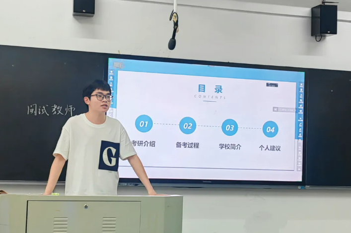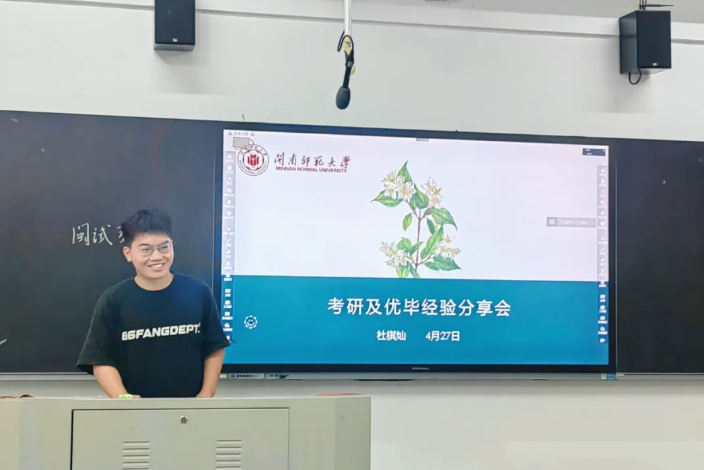 首先,陈瑶从“如何锻炼师范生教学技能”与“优毕上岸经验”两方面入手,讲述了思政师范生从心态调整、教学环节、教学准备等方面着手锻炼自身专业技能,同时分享了如何争取优毕的宝贵经验。接着,简垒锋从了解考研科目和招录情况、备考过程及注意事项、学校简介与专业选择三个方面分享考研经验。随后,杜棋灿从个人经历出发,分别介绍了考研、考公、优毕三种不同路径的发展方向,让同学们从具体的例子中得到启发。