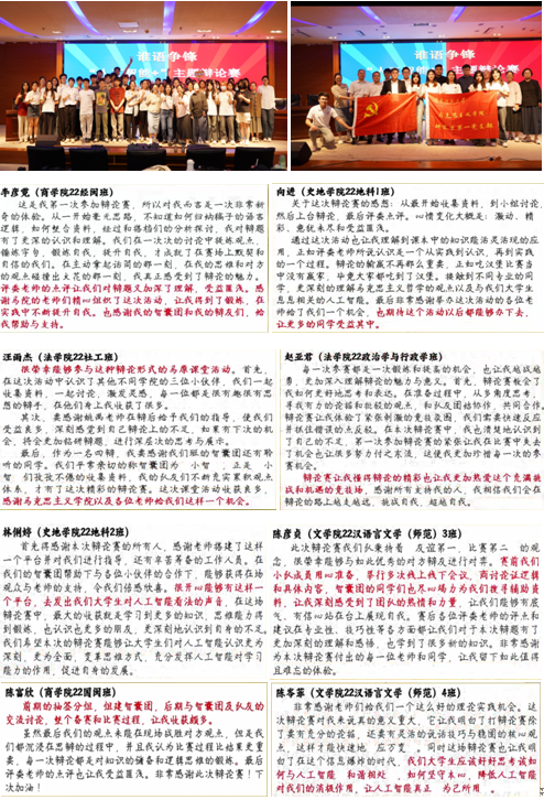 主办,马克思主义基本原理教研室承办及研究生第一党支部协办。22级研究生李壮担任主持,邀请姚禹、何铭灏、李重明、丁世林、陈源充五位不同学科专业的博士教师担任评委,特邀嘉宾何孟飞教授现场指导。此次活动吸引了近四百名师生线下热情参与和部分师生线上观摩。