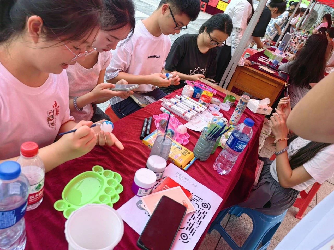 弦歌广场上举行“创造星球的人”活动。活动现场,同学们利用准备好的彩绘颜料,根据自己的想象,在白色乒乓球上绘制山水林田湖草,制作属于自己心目中的生态星球。此次活动不仅激发了同学们的创造力,还让同学们感受到了生命与生态的绚丽。