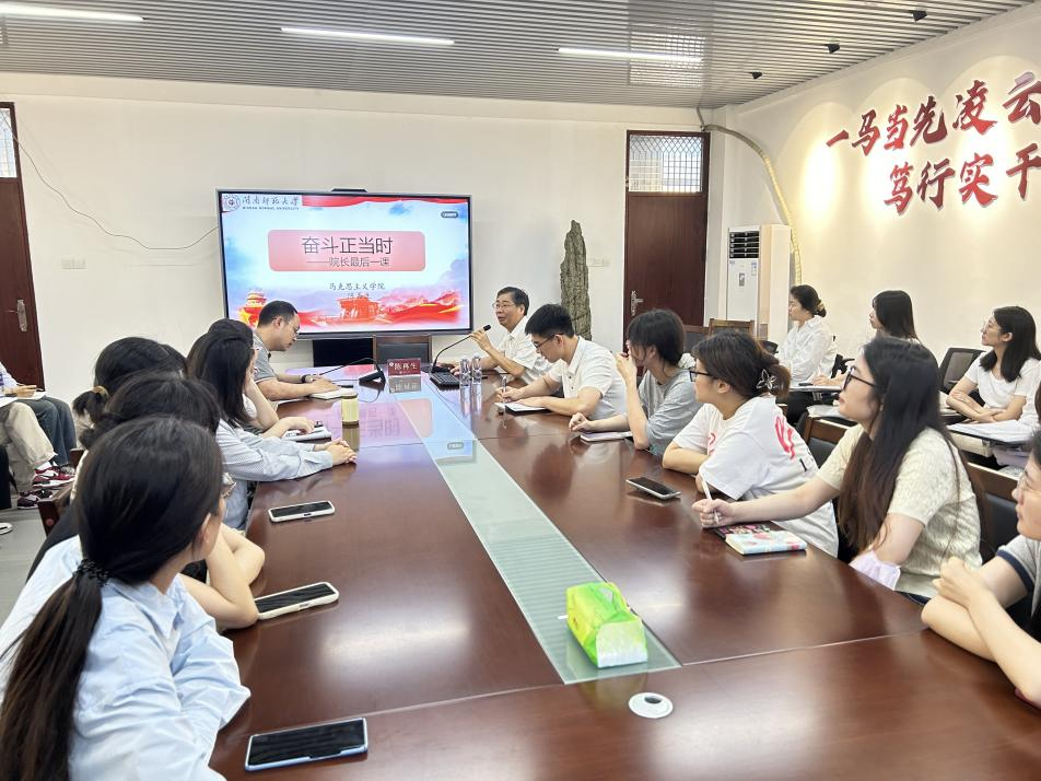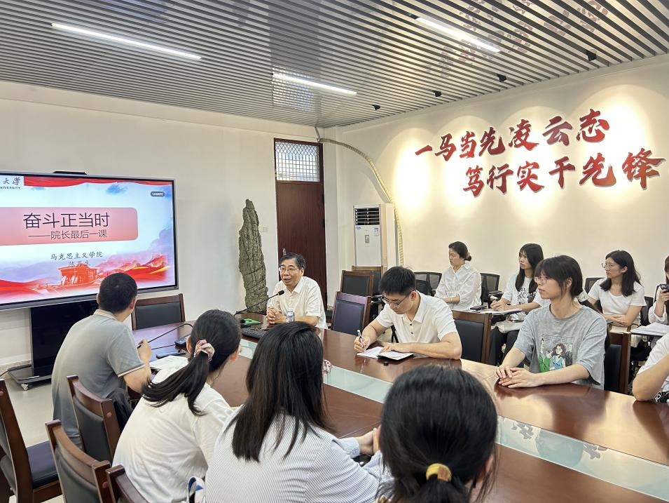 院长陈再生于综中404会议室为2024届毕业生讲授题为《奋斗正当时》的最后一课。本次课程由学院团委副书记潘怀杰主持,全体2024届毕业生参加。