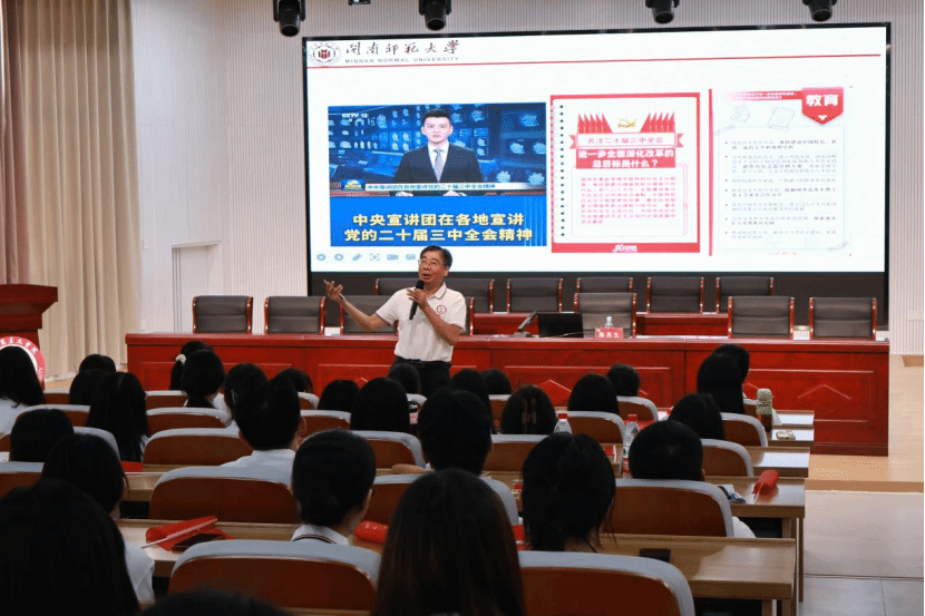 陈再生院长从“要向上”“要好学”“交挚友”“健好体”四个维度展开“开学第一课”的内容。课上,他叮嘱同学们要积极向上。他表示各位同学“要好学”,要有明确的学习目标,新生们要及时转变自己的角色,端正学习态度,增进对本专业的理解与兴趣。同时作为马院人,要坚定理想信念,关注时事政治,把握大势;随后,陈再生院长谈到了“交挚友”的重要性,并指出在马院,各位同学将有机会结识来自五湖四海的同学,好的朋友将是人生中一笔宝贵的财富;最后,他鼓励同学们“动起来”,不要躺平,要积极锻炼,强健的体魄是读书学习的前提,运动时大脑释放的内啡肽也是幸福感的一种来源。