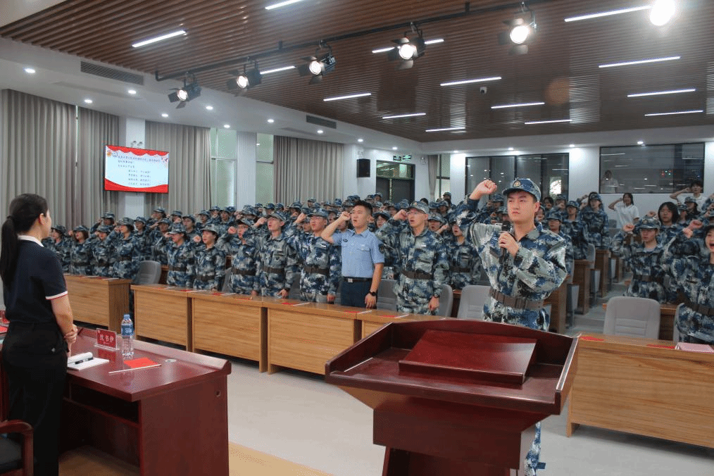 党委副书记邓战军的鼓励与关怀下,2024级新生代表谢亮带领全体同学宣誓,庄严承诺在为期14天的军训中磨砺身心,坚定信念,以始终如一的热情与希望开启灿烂新篇!