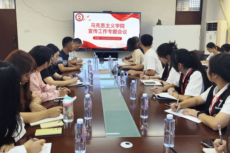 于综合楼中区404会议室召开宣传工作专题会议。会议由党委副书记邓战军主持,各科室负责人及学生宣传骨干、通讯员参加。(通讯员 张欣蓓)