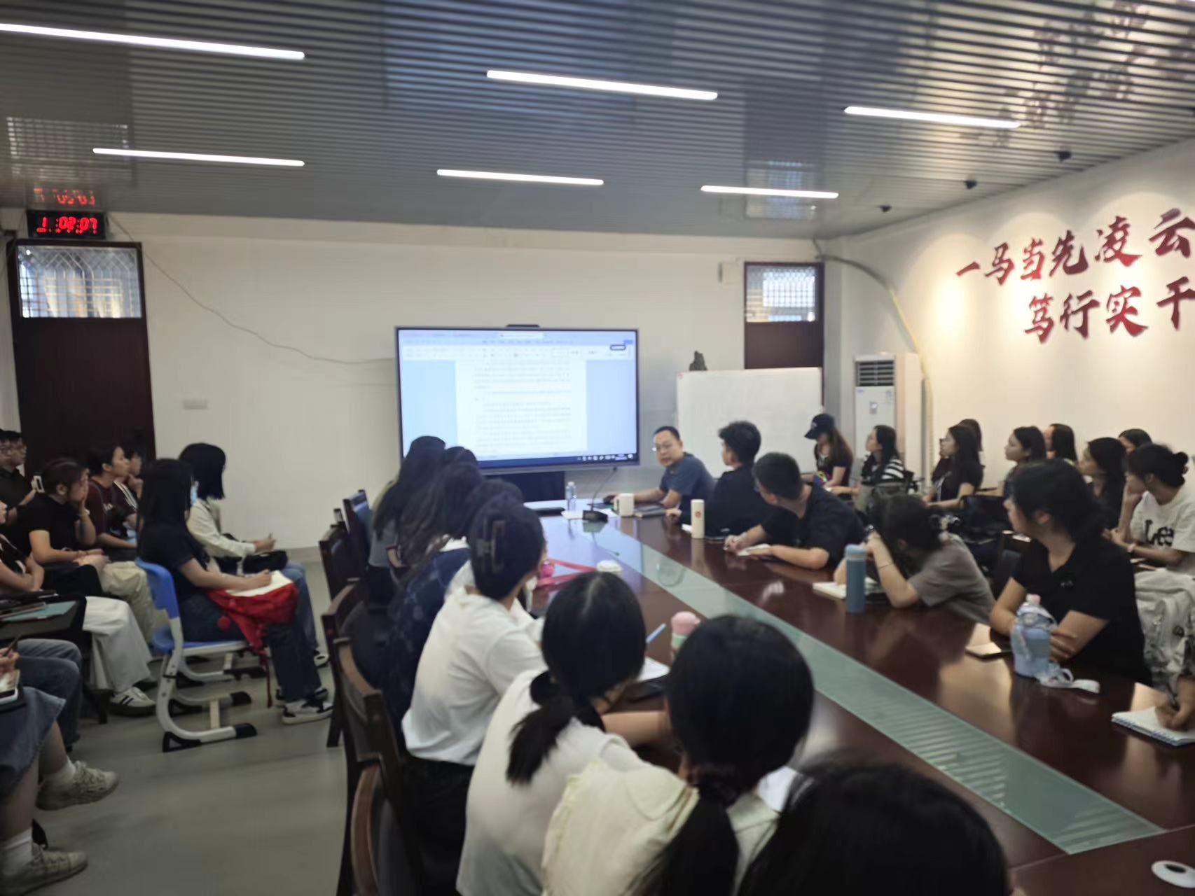 2023级学硕班于综合楼中区404举行2024-2025学年班委换届竞选大会,院团委副书记潘怀杰出席会议,2023级学硕班共同参会。(通讯员 张虹)