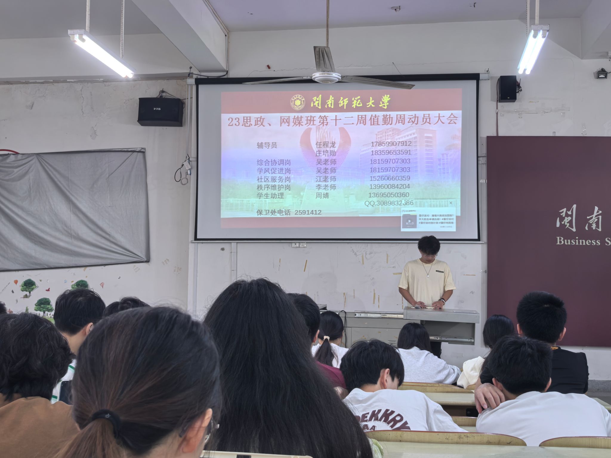 于笃行楼223与新传院网媒班开展第十二周执勤周动员大会。(通讯员 熊艺)