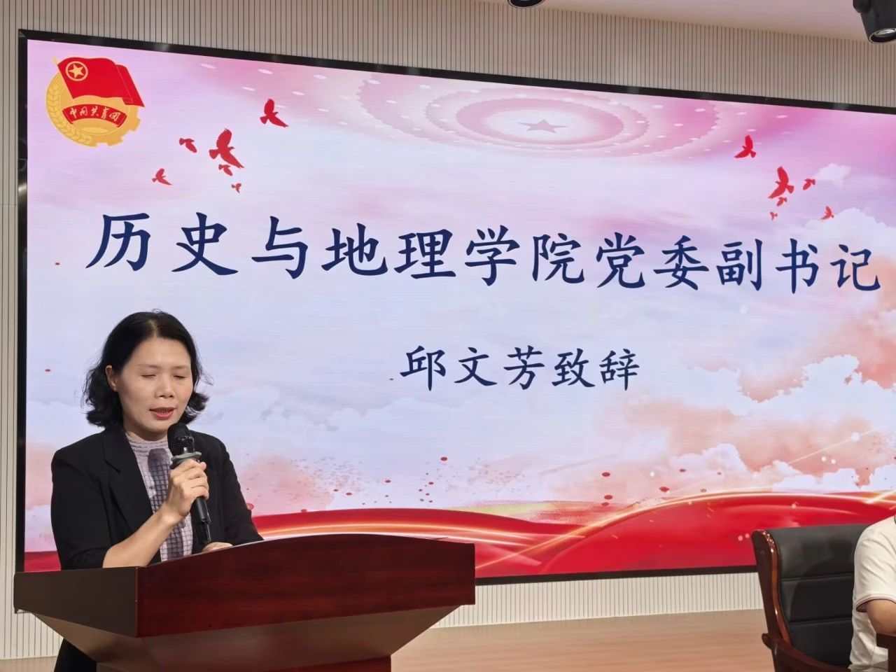 党委副书记邓战军与历史地理学院党委副书记邱文芳共同为本次团校培训班授旗。