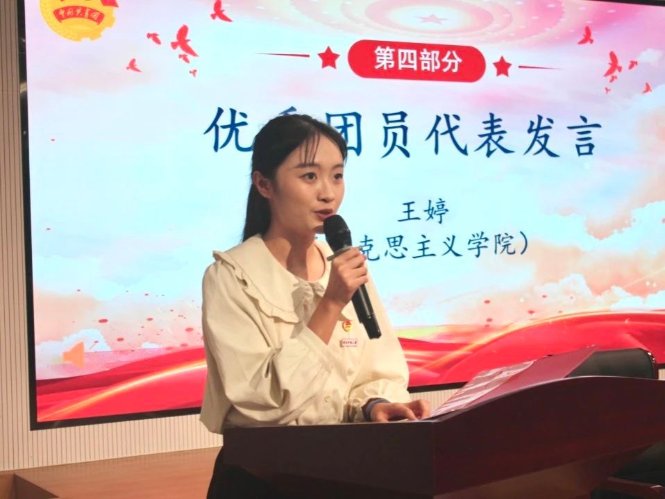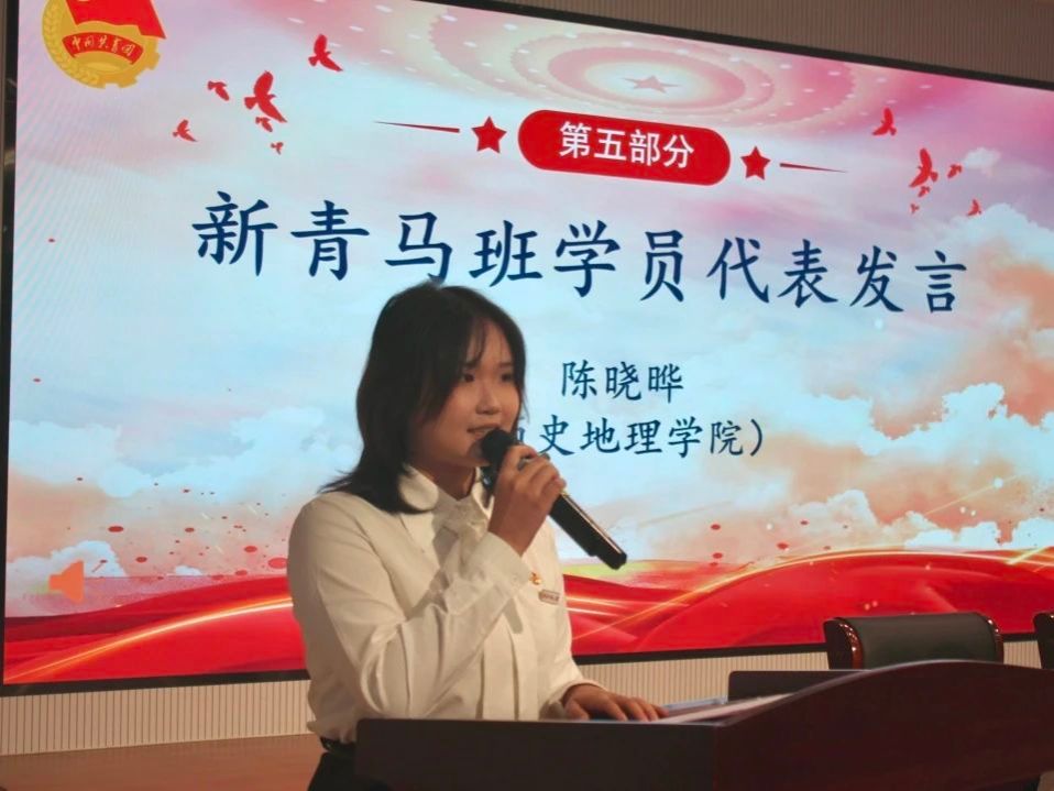 优秀团员代表王婷与历史地理学院青马班学员代表陈晓晔相继发言。