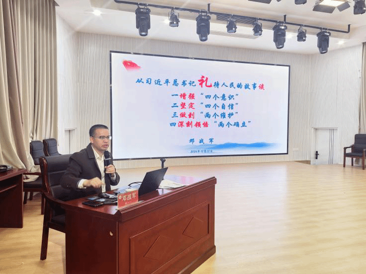 12月13日晚,人兽性交 党委副书记邓战军围绕“习近平总书记礼待人民的故事”在校东门马院礼堂为学生党员们讲授主题党课。(通讯员 汪相汝)