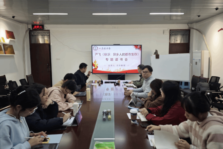 12月12日晚,人兽性交 第六期“一马读书会”在综合楼中区404举行,本次读书会由法学院方劲教授领读严飞《悬浮:异乡人的都市生存》一书,姚禹老师和学生参加本次读书会,读书会由何铭灏老师主持。(通讯员 缪俊杰)